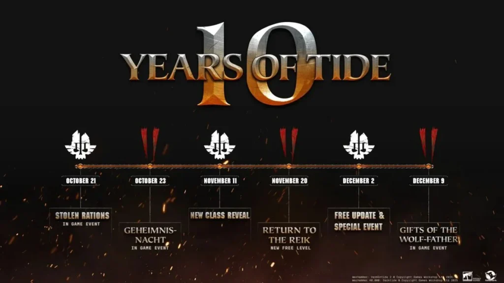 В Vermintide 2 уже идёт ивент, в ноябре ожидается новый уровень и до конца года будет еще одно событие.
